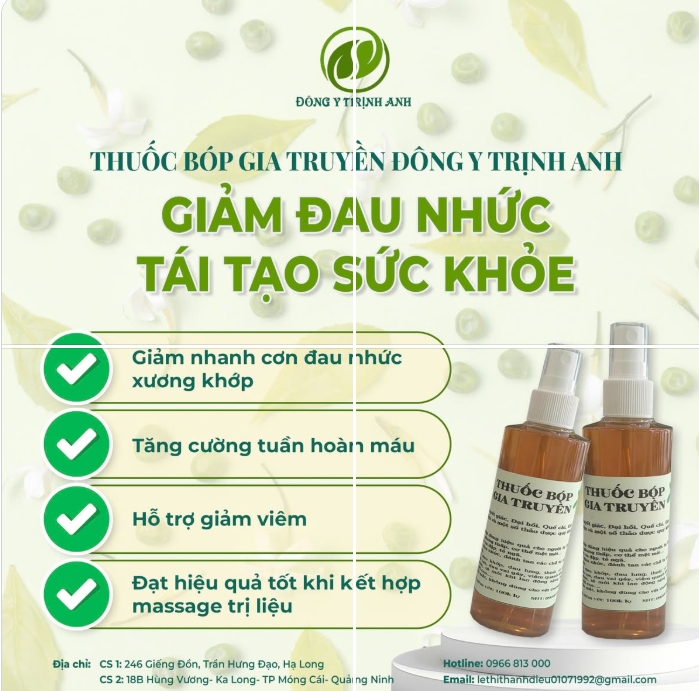 Chữa đau nhức xương khớp tại nhà là giải pháp tiện lợi, nhưng cần kết hợp nhiều biện pháp để đạt hiệu quả tốt nhất. Thuốc xoa bóp gia truyền Đông Y Trịnh Anh là giải pháp hiệu quả giúp giảm đau nhanh chóng và hỗ trợ phục hồi khớp tự nhiên.